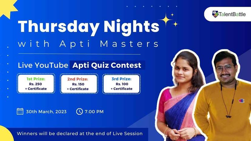 This is a New Quiz Contest organized by Talent Battle for Aptitude Enthusiasts and those who want to be in touch and practice aptitude daily.